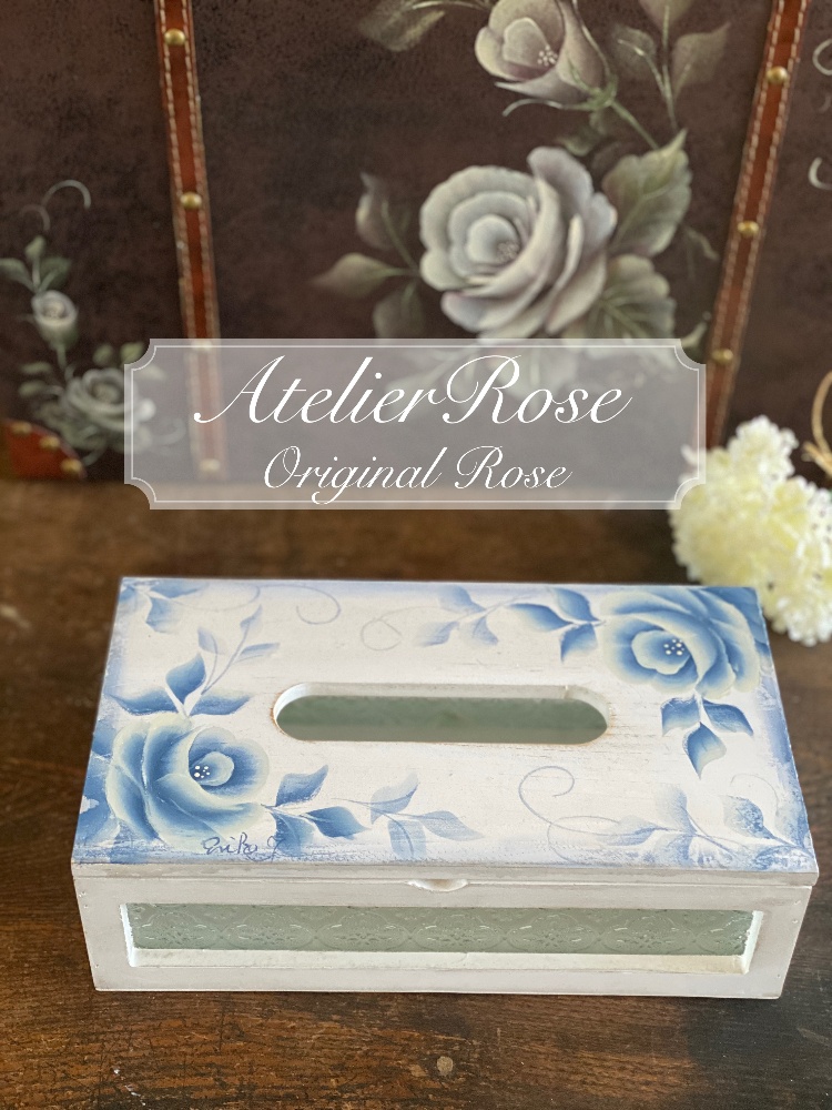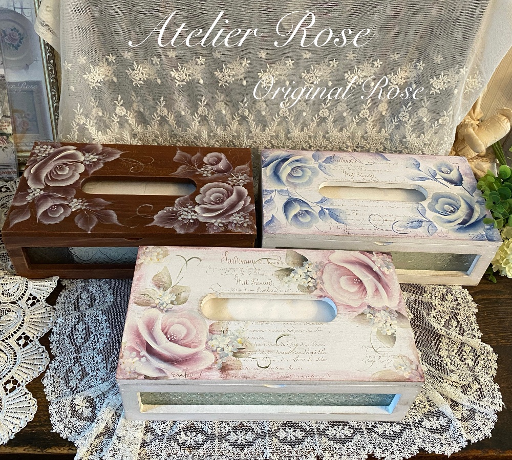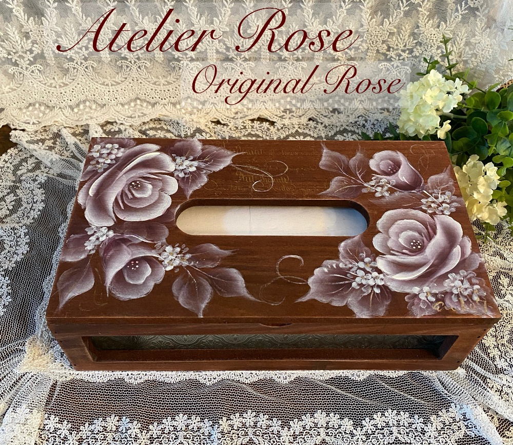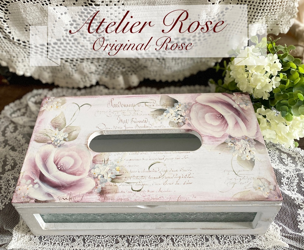 素敵なアンティーク調ガラスのティッシュBOXに アトリエRoseオリジナルローズを描きました。